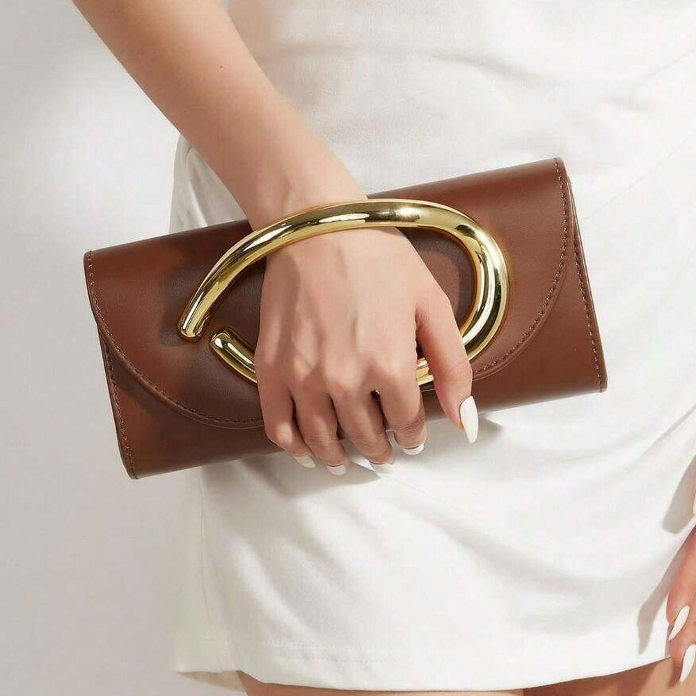 LA3230 BR Bold Hardware Accent Faux Leather Evening Clutch Bag / Crossbody Bag