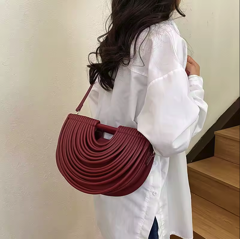 LA2501 WNRD Faux Leather Unique Half Moon Structured Handbag Crossbody Bag
