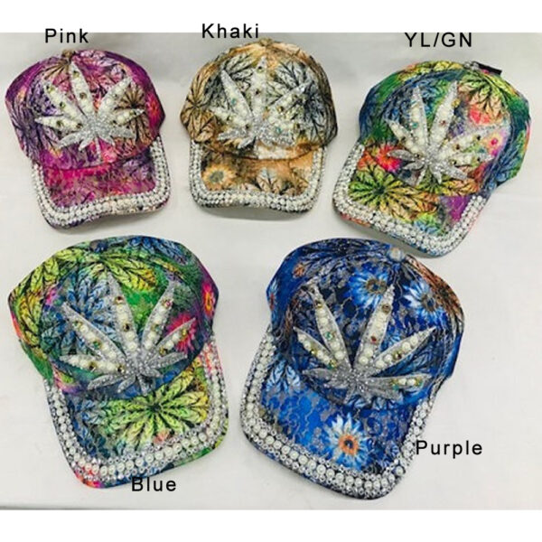 BH7819 ASST Marijuana Jeweled Glittering Baseball Cap(3PCS)