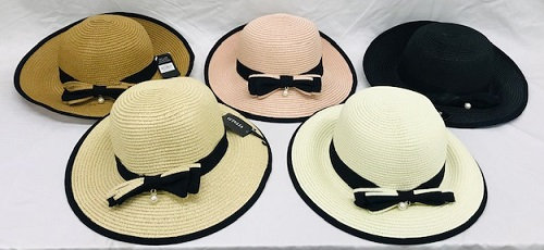 HT8838 ASST Women Fashion Ribbon Pearl Straw Hat (3PCS)