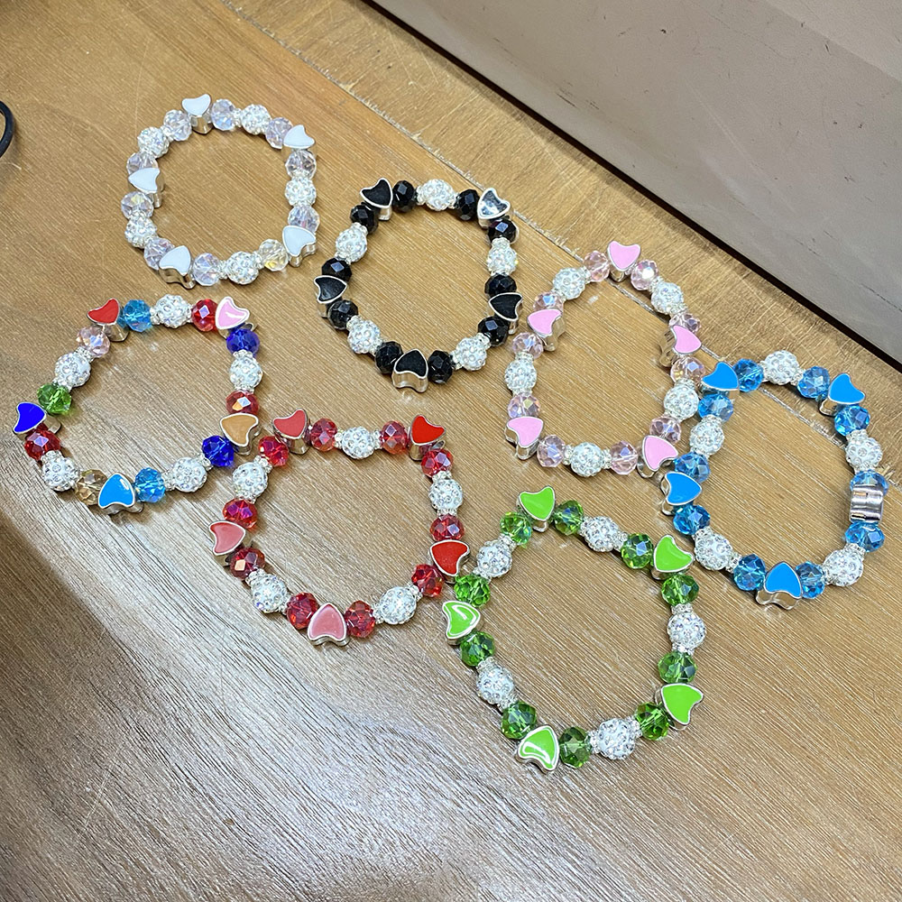 BRC0559 ASST Heart Charm Adjustable Beaded Bracelets (6pcs)