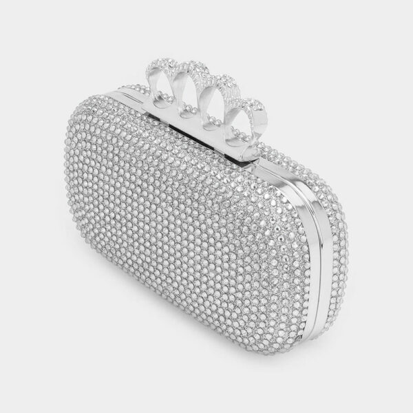 LAL458-SILVER Bling Rectangle Evening Clutch / Crossbody Bag