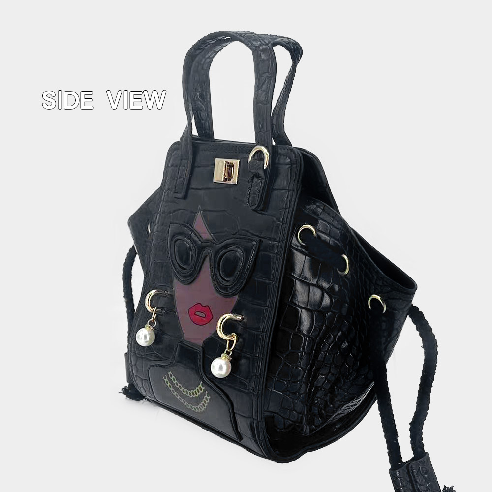 Girl Accented Alligator Patterned Tote / Crossbody Bag
