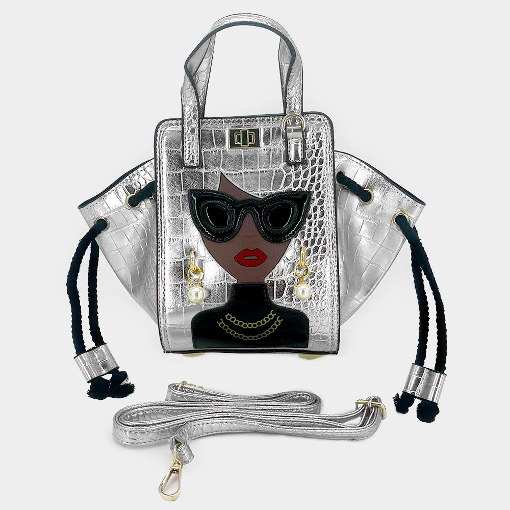 LA5302-SL Girl Accented Alligator Patterned Tote / Crossbody Bag