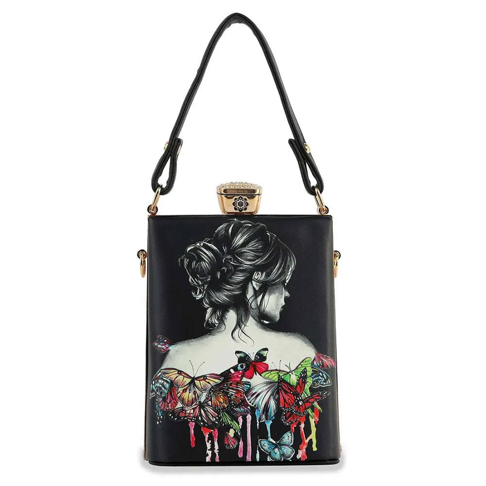 LA0022-10-MULTI Butterfly Printed Top Handle Mini Bag / Crossbody Bag