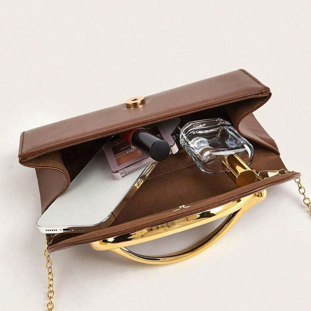LA3230 GD Bold Hardware Accent Faux Leather Evening Clutch Bag / Crossbody Bag