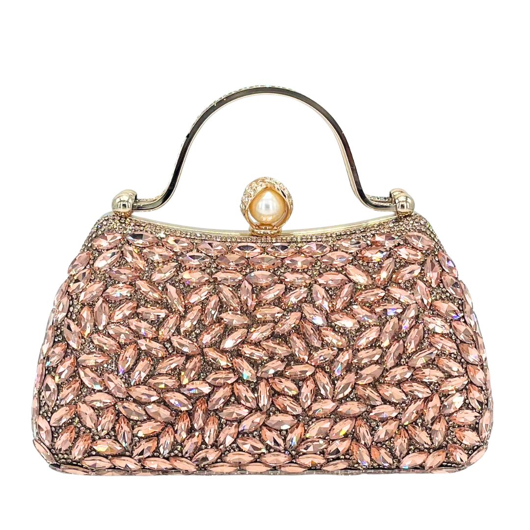 LA8264 CHA Crystal Diamond Top Handle Embellished Evening Clutch Bag