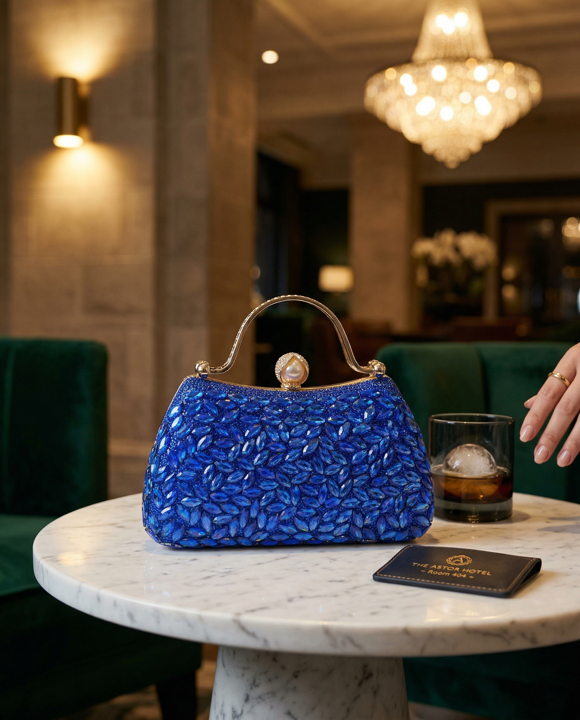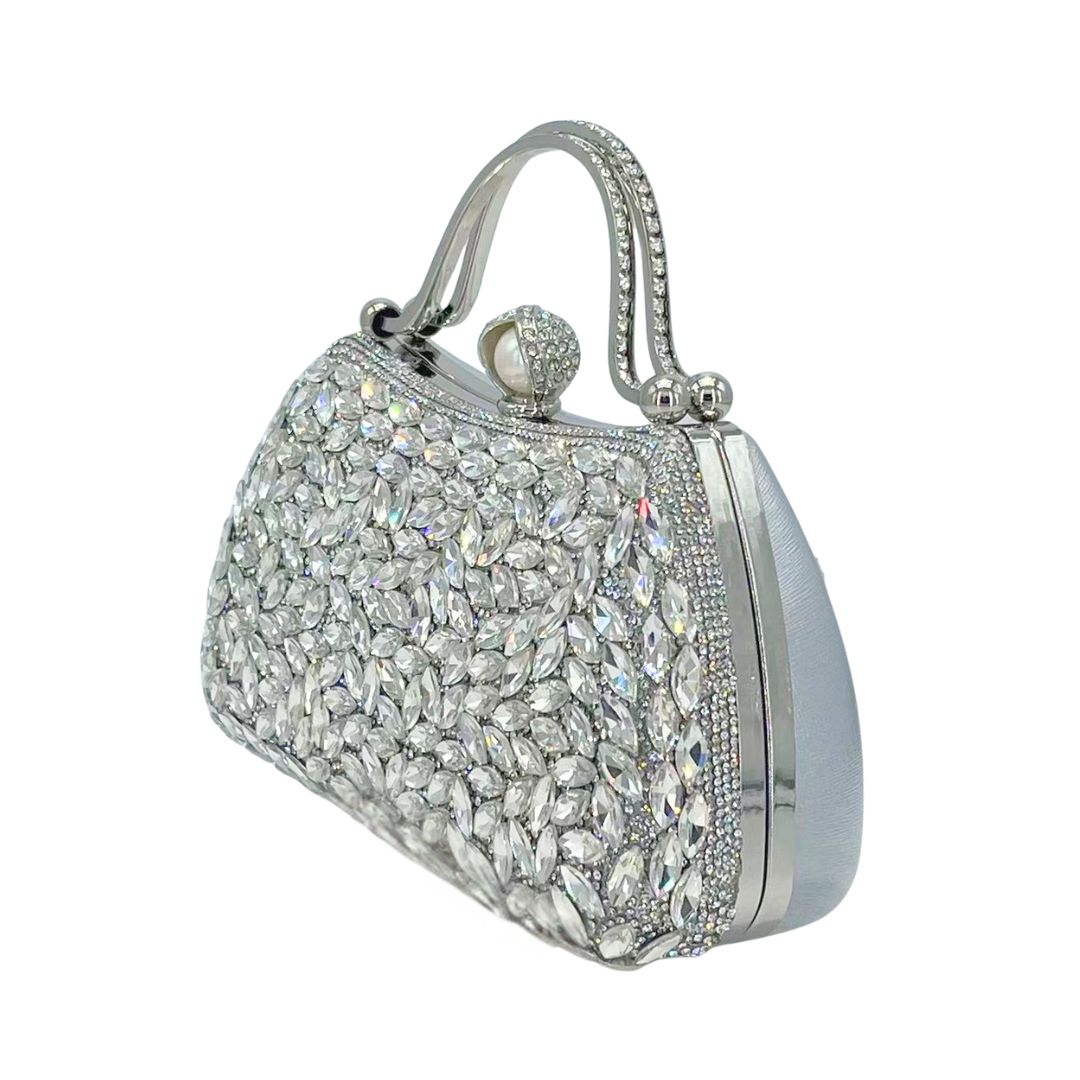 LA8264 SL Crystal Diamond Top Handle Embellished Evening Clutch Bag