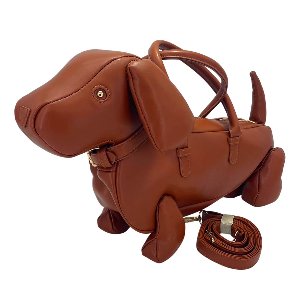 LA9259 BR Faux Leather Dachshund Dog Crossbody Handbag