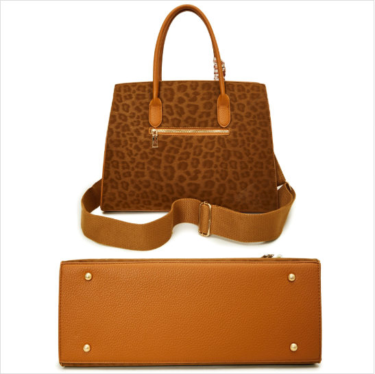 LEO25502-T3 WN Leopard Texture Satchel W Matching Bag And Wallet Set (3 N 1)