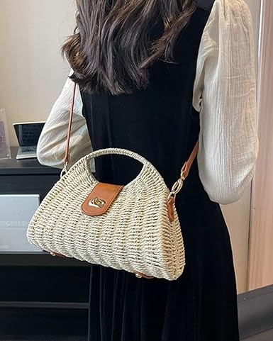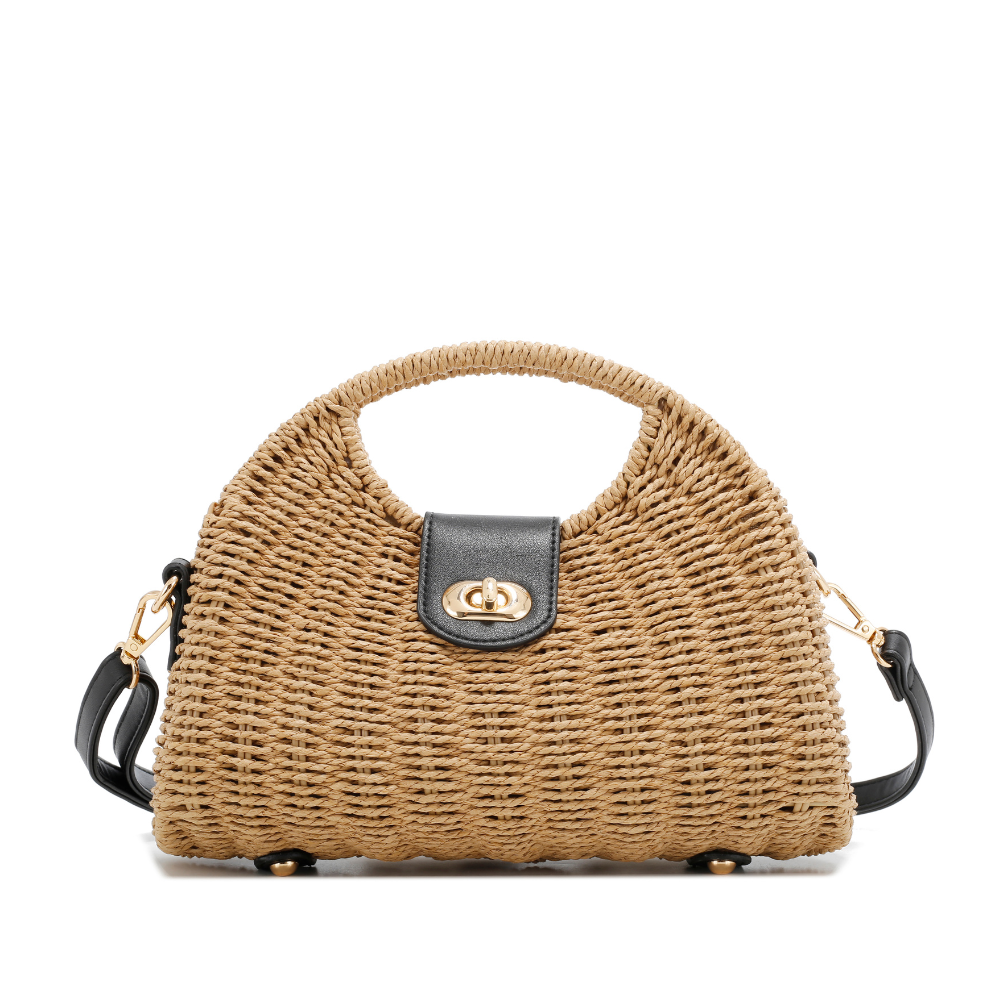 M1167 BK Fashion Rattan Top Handle Shoulder Handbag