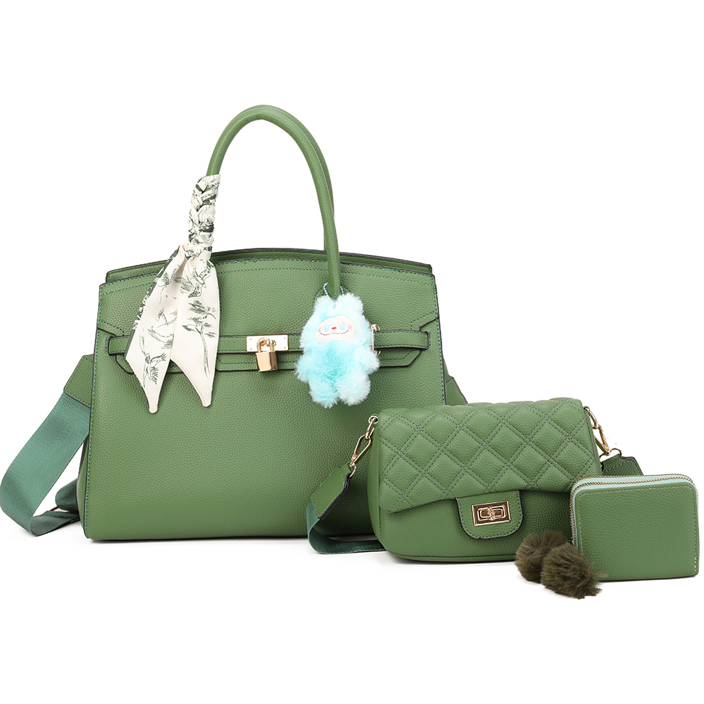 PU24126-T3-GN Handle Satchel Bag with crossbody & wallet (3 N 1)