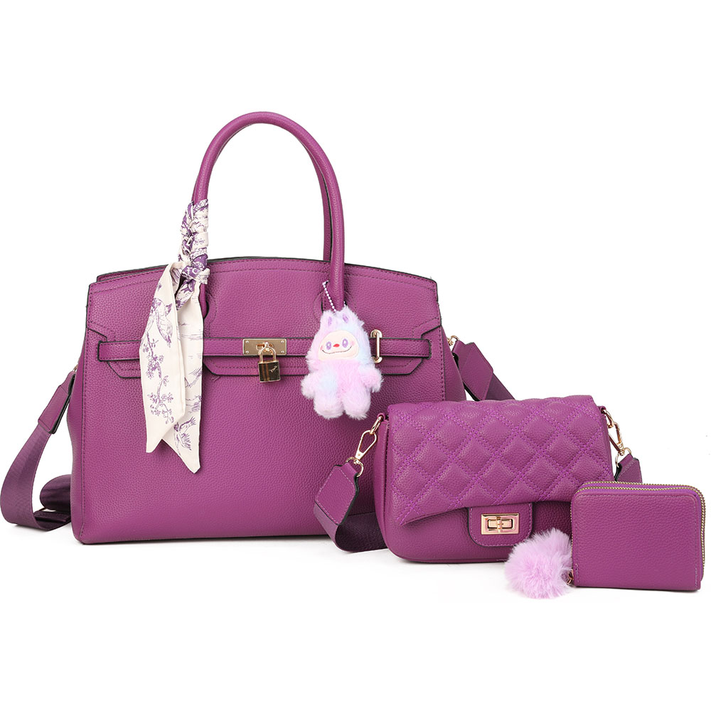 PU24126-T3-PP Handle Satchel Bag with crossbody & wallet (3 N 1)