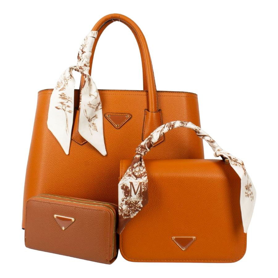 PU25002-T3-BR Handle Satchel Bag with crossbody & wallet (3 N 1)