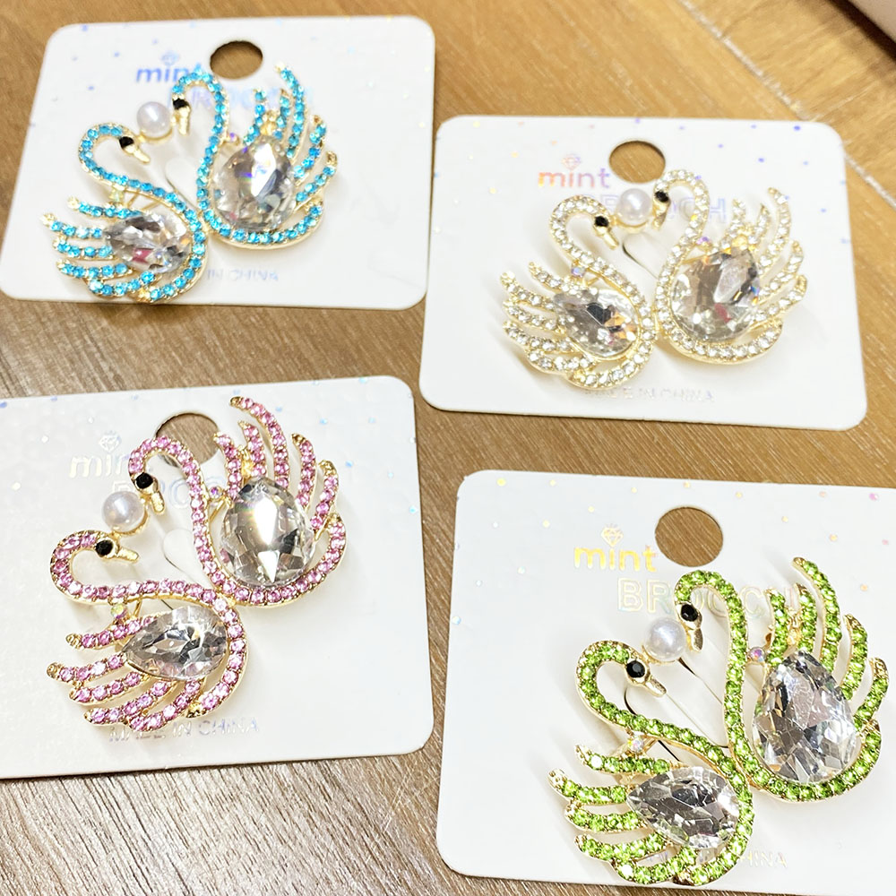 RBC-0572 ASST Double Swans Rhinestones Embellished Pin Brooches (6pcs)