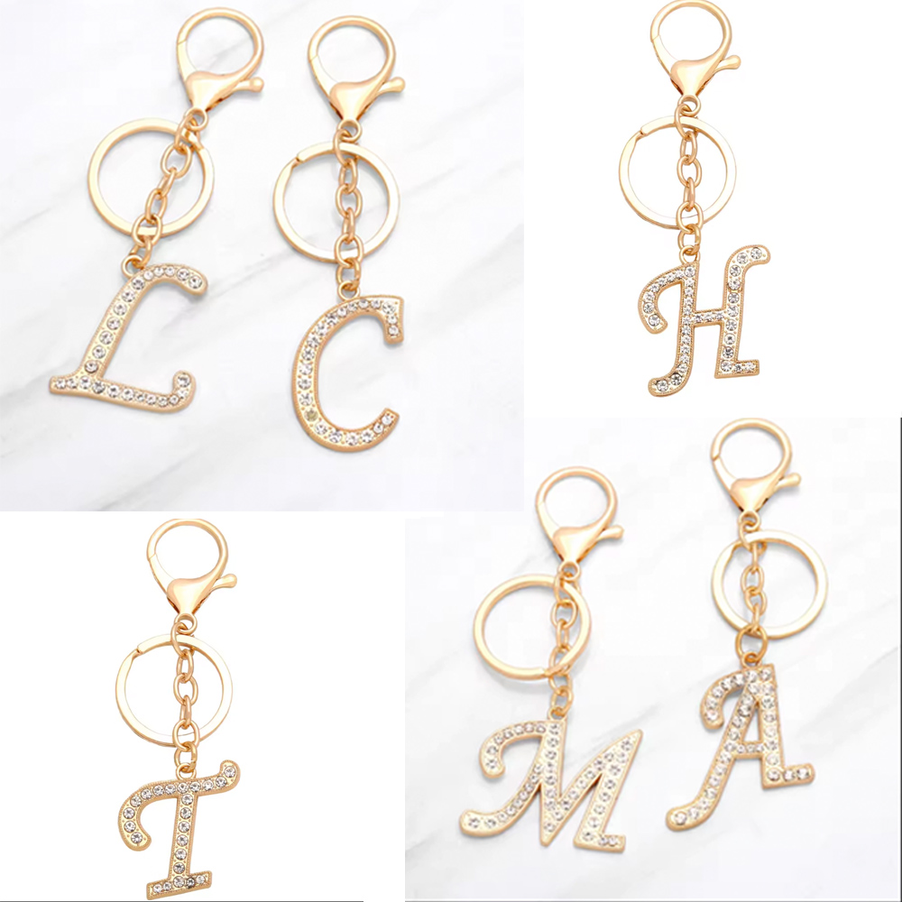 ENK530 ASST Rhinestone Alphabets Design Keychain (12 pics)