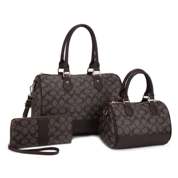 UM-31483 CF/CF Oval Printed Texture W Matching Bag And Wallet Set (3 N 1)