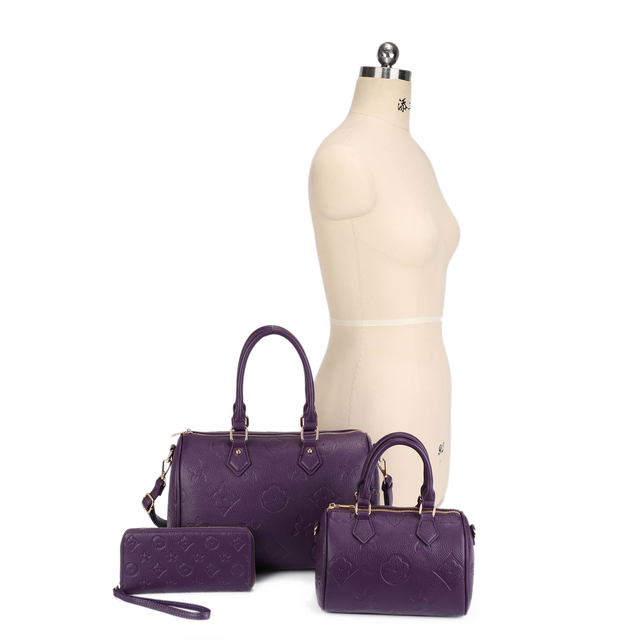 US-31291A SET MD 3In1 Monogram Design Satchel W Matching Bag Wallet